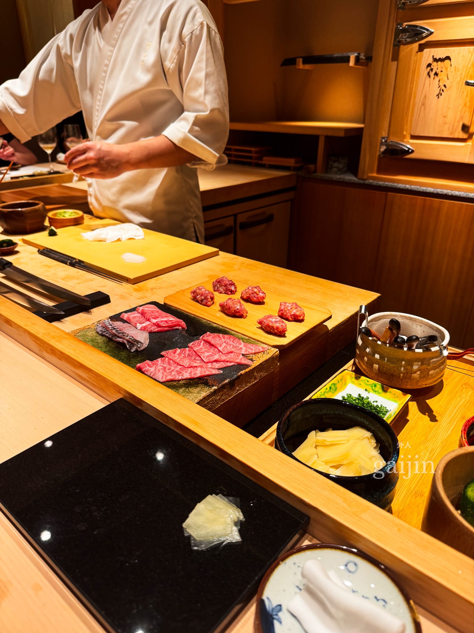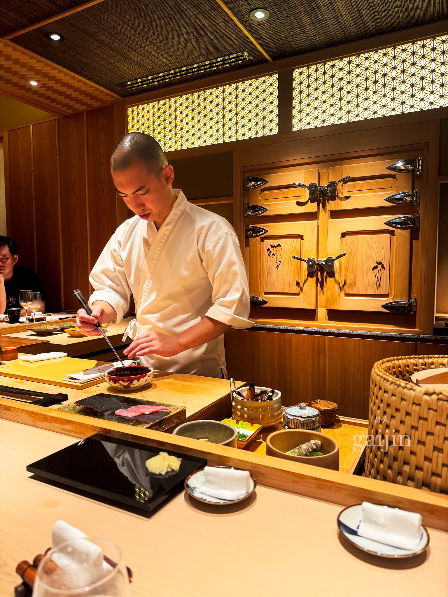 Walking in, you are greeted by friendly staff and a very happy and cheerful Katori-san behind the counter. The first thing you notice about this chef is the amount of happiness radiating from him. He's a bit younger than a lot of the other sushi masters, but you can't help but feel good vibes from his presence.