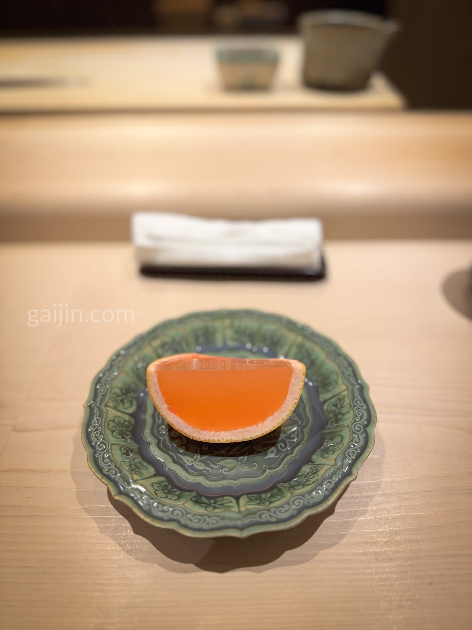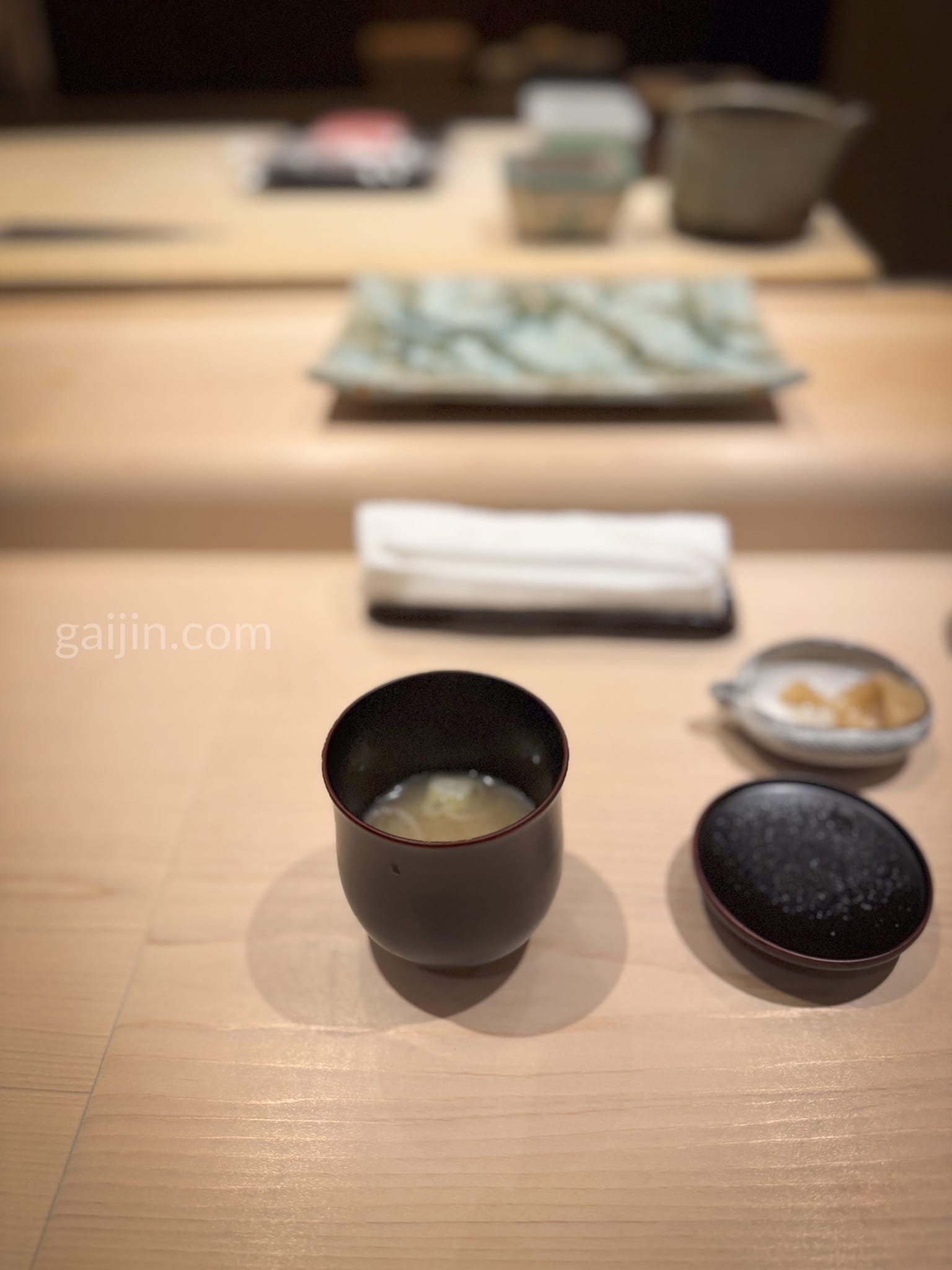 The meal concluded with a miso soup and house-made grapefruit jelly.